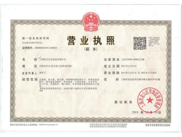 Shanghai Kaifan Petrochemical Equipment Co., Ltd. Address: No. 2640 Tingfeng Road, Zhujing Town, Jinshan District, Shanghai Free Service Hotline: 400-1500-688 Headquarters Phone: 021-56083050 Postal Code: 201503 Company Website: shkfsh.com Email: kfshjx@kfshjx.com